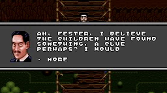 Baby Pubert, the most recent addition to the Addams Family, has been abducted by Debbie Jellinski, his former nanny. As Uncle Fester it is your job to rescue little Pubert. You must search the surrounding areas (forests, swamps, gardens and the like) of Addams mansion, while avoiding traps, solving puzzles and killing monsters. You'll face such hellish creatures as vultures, gargoyles, bats, ghosts and ghouls. During your mission, you'll run into Gomez, Morticia, Lurch and other members of the Addams Family, who are on the grounds to lend advice and provide items. These items include a box of seeds for producing enemy-attacking mini bushes, black beetle cookies which give Fester a dose of ill-health (this is a good thing), stone marbles for turning attackers into rock, a bowling ball for hitting enemies and breaking through walls and a battery, which powers up Fester's standard Zzap attack. Within the seven levels of play, there are tons of other creatures to zap and items to find.