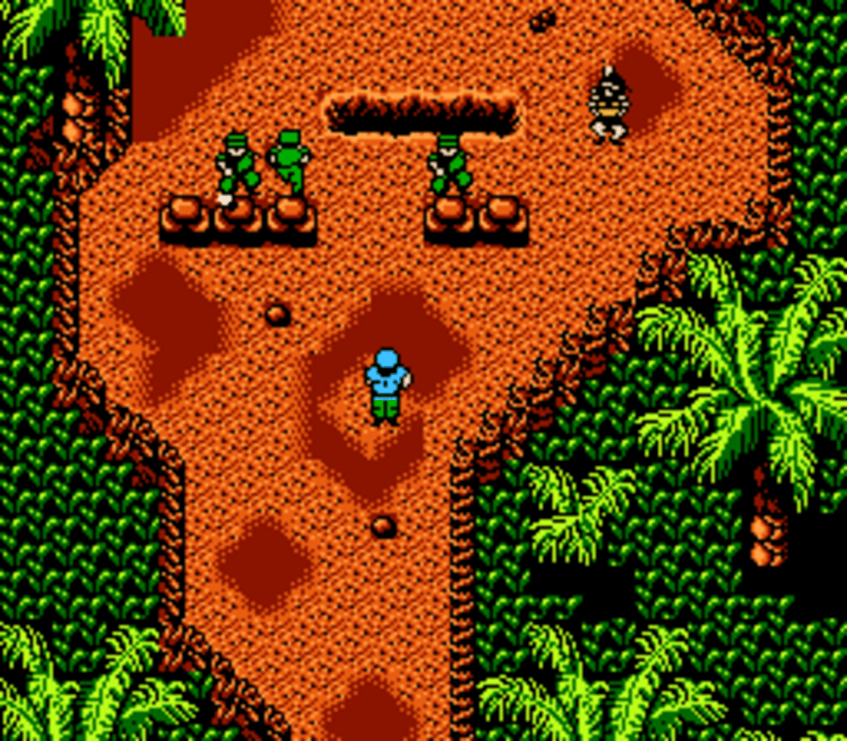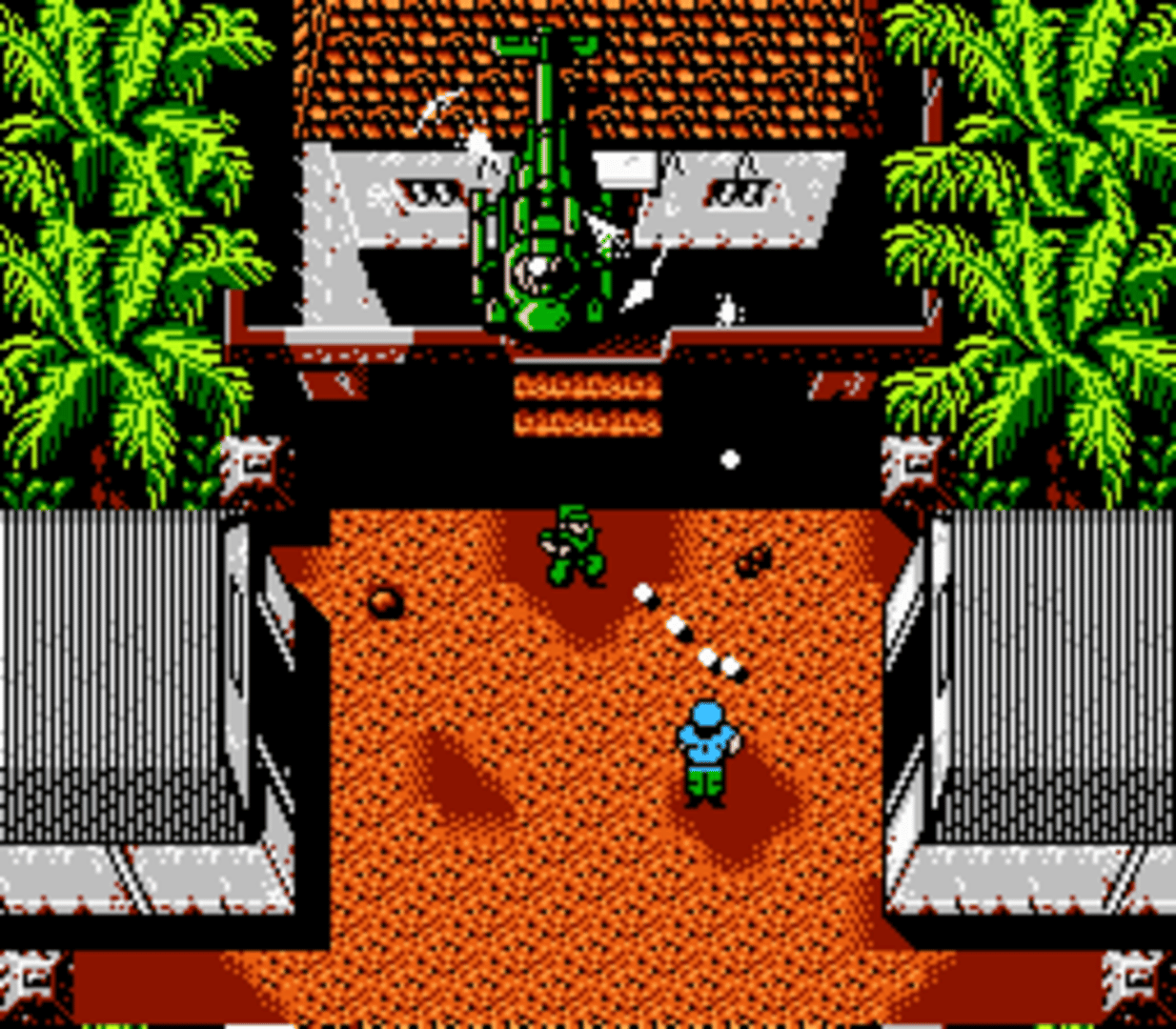 It is a 2D top-down shooter taking place on an unnamed Caribbean island which shape reminds of Cuba. There are two heroes fighting against enemies in various environments (jungle, city, marsh, bridge, etc.) and their goal is to dethrone an evil dictator. It is a port of an Arcade game in which the island was Cuba indeed while the two heroes were Fidel Castro and Che Guevara. The evil dictator was Fulgencio Batista.