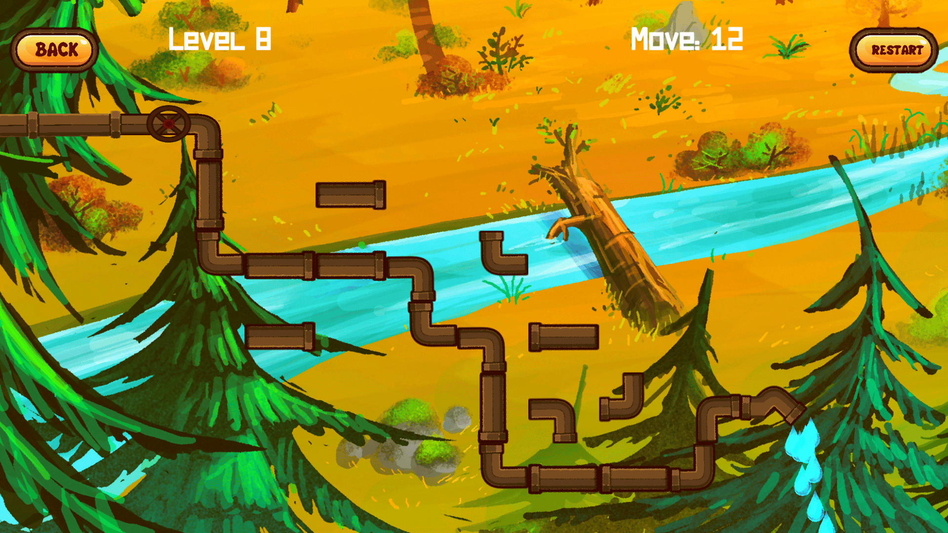 Water Pipeline is a strategic puzzle game. Objective of this game is simple, rotate the different pieces of pipe in order to get water and save the life. There is no time limit but you have limited moves for each round and you have to complete the pipeline before running out of moves. So think about a good strategy before you start working on the pipeline.
