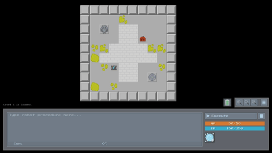 A game based on programming and strategy to achieve the goal, that the robots reach the target. 4 types of robots and each with special characteristics