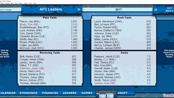 Football Mogul 18 is the 16th version of the addictive football simulation game from the makers of Baseball Mogul. This version includes rosters and player ratings for opening weekend of the 2017-2018 season.