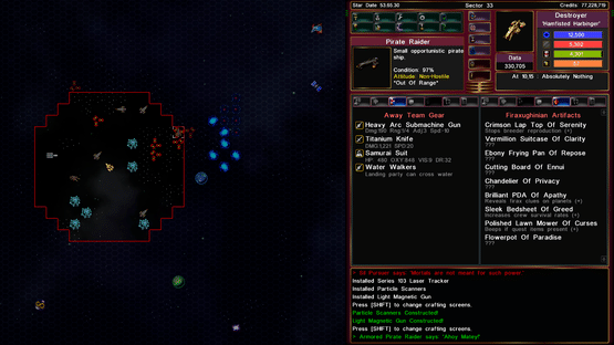 A sci-fi turn-based, tile-based Traditional Rogue-Like of incredible scope, accessible to new players, challenging to experienced rogue-likers. Explore an infinite procedural open-world universe full of unique environments as you lead your ship and crew to victory or death. Okay, mostly death.