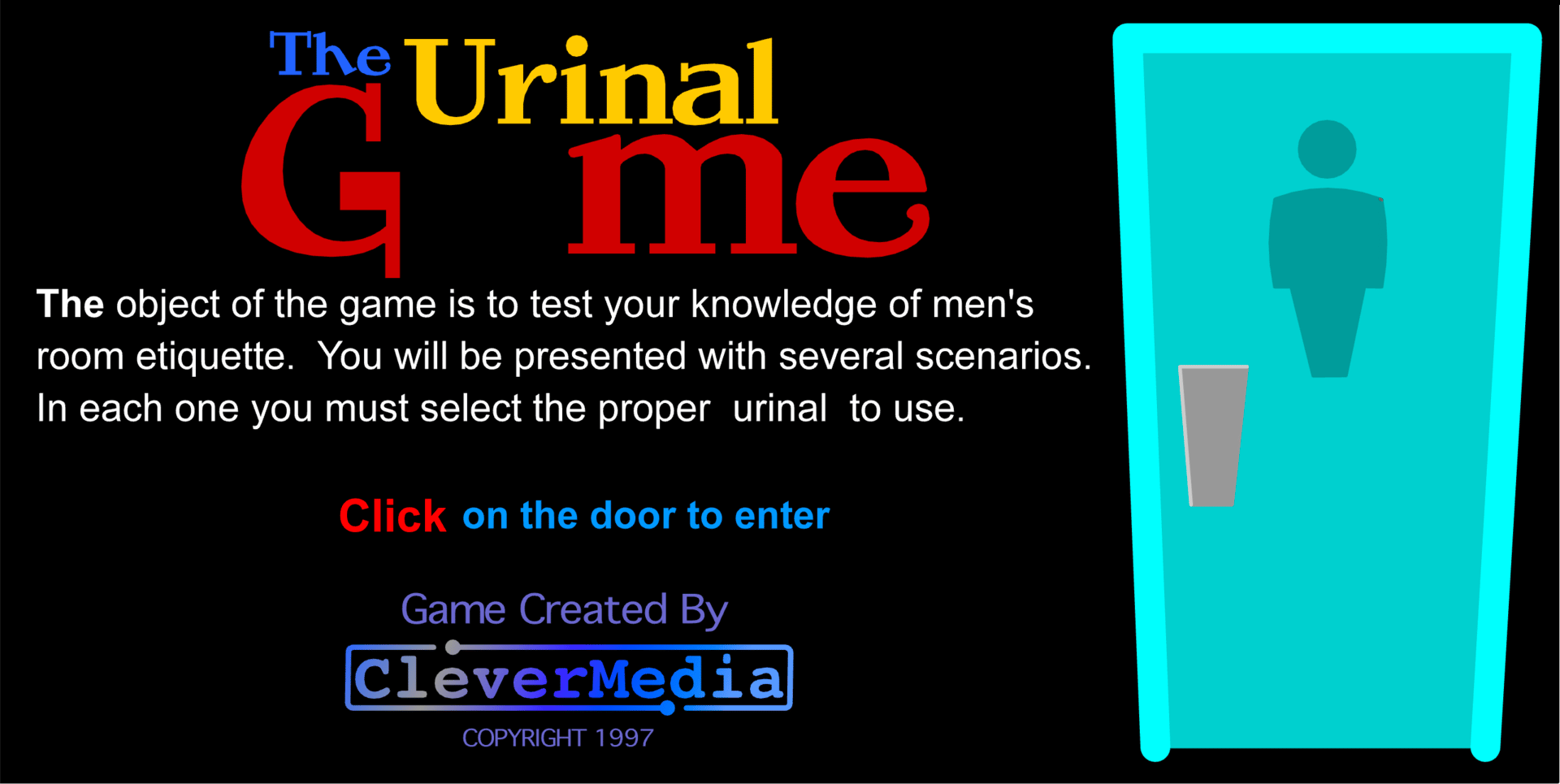 A browser-based quiz game where players must select the 'correct' urinal to use in a number of different scenarios.