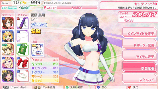 Venus Project is an idol training game that uses a card and command input system. Players partake in versus-style performance battles in order to win popularity as they support the growth of their budding idols.