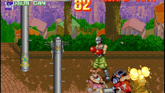 Nekketsu Oyako is a beat-'em-up by Technosoft released for the PlayStation in 1994 and the Sega Saturn in 1995. Neither version was released outside Japan. The title roughly translates to "Burning-Blood Family." The game is noted for its humorous presentation. For example, one stage takes place inside a whale, and alcoholic beverages (a healing item) can only be consumed by Rando while his two kids get an "adult only" message instead.