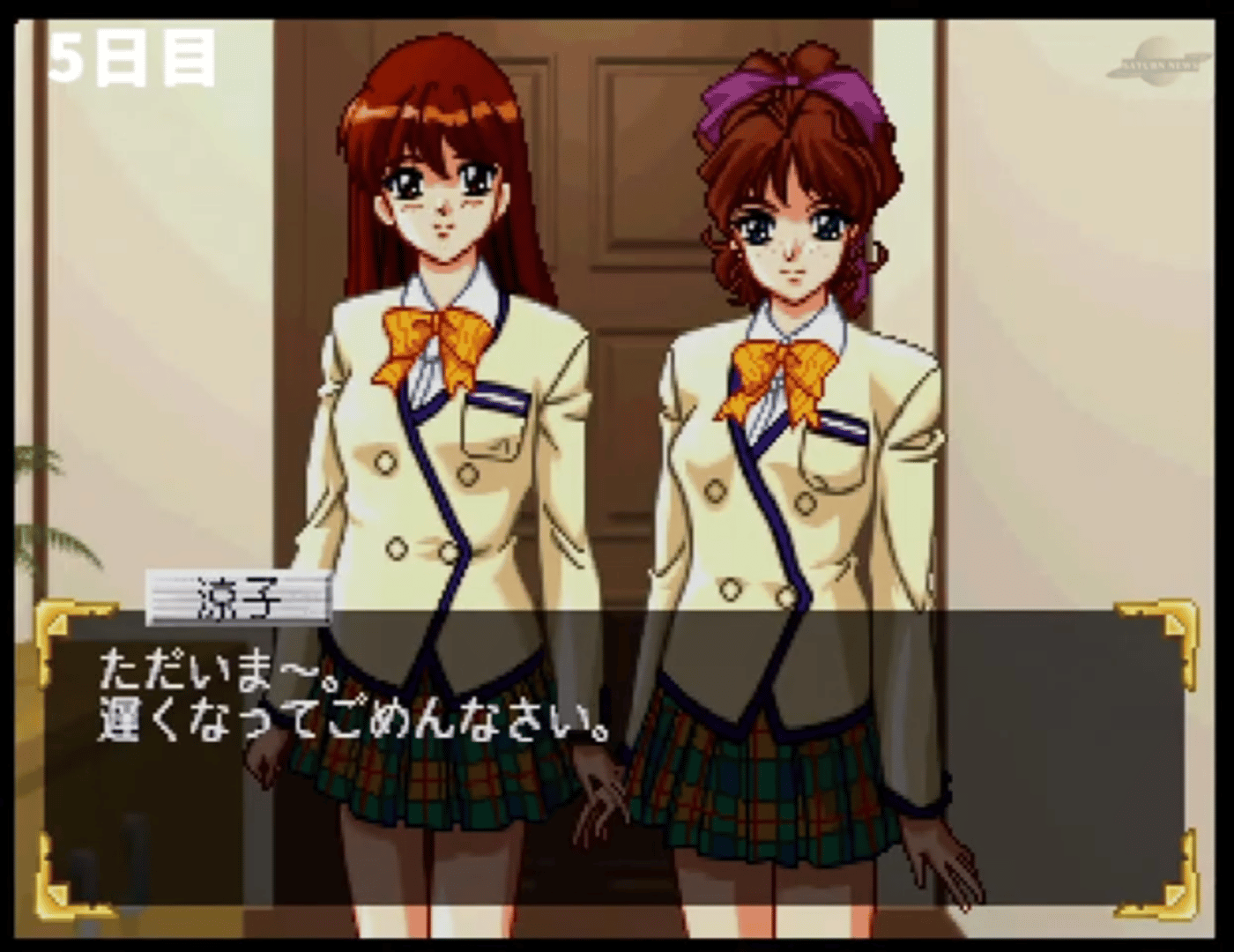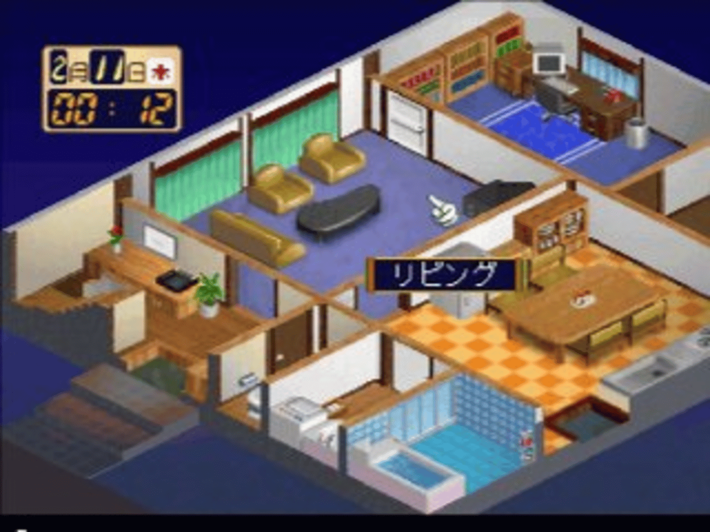 Roommate: Inoue Ryōko is a love-simulation adventure game and the first title in the Roommate series. The player can freely move about the apartment, and the game mostly consists of voiced dialogue sequences where the player interacts with Ryōko and can respond to her via multiple-choice answers. Unlike many such games, the two weeks of the in-game story progress in real time using the Saturn's internal clock (or the PocketStation in the PlayStation version), and the time and frequency of the player's visits will affect the events that occur and the protagonist's relationship with Ryōko, leading to several different endings. In Roommate Ryoko you have three years to develop a relationship with her. Using a truly innovative real-time feature, the Saturn's internal clock affects how the game plays out. If you play during the day, she isn't around at times. Most of your "interfacing" with her occurs at night (welcome to the next level, indeed). Bad Three's Company allusions aside, there is a good bit of social interaction that goes on - you actually get to know her and have to reveal a lot about yourself. What is most impressive, though, is that the conversation is never recycled - there are thousands of things that Ryoko can say. Seasonal changes affect the game, and although it isn't played in real time, you must adjust your schedule in the game to hers to catch her (this is done by leaving her notes on your shared white board). Don't get antsy and set the Playstation clock ahead though; the Playstation reads that "skipped" time as time you didn't spend talking to Ryoko, and by the time you get to the "future," she'll have moved out. The graphics in Roommate look pretty good - forget polygons or texture mapping though; everything here is drawn two-dimensionally with special attention to detail. The sound is also pretty sharp because Ryoko actually speaks a lot of her dialogue (while it is correspondingly displayed onscreen). Unfortunately though, the gameplay almost entirely consists of listening to your new roommate and picking an appropriate thing to say (a lot like your freshman year of college really).