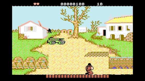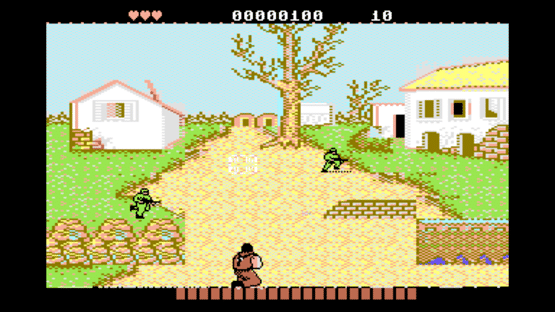 Originating in the arcades, Cabal is a shooter where the protagonist runs back and forth along the bottom of the screen, ducking and dodging bullets and grenades from the enemy. The roll maneuver from the arcade was not implemented in the PC version. The player returns fire by moving a target around the screen which also moves the player character and may expose him to enemy fire.
