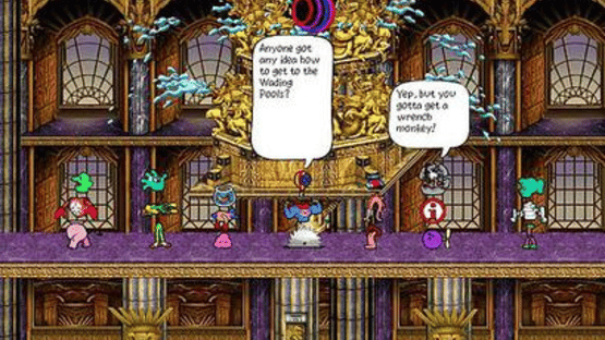 Castle Infinity is an MMOG (Massive Multiplayer Online Game) designed for children as young as age 8. It emphasizes cooperative problem solving using non-violent methods in a colorful, imaginative atmosphere. Essentially it is a side-scrolling platformer with adventure puzzles. The main objective of this arcade-style game is to amass enough power points and earned objects to battle and remove the monsters that have penetrated the dinosaurs' sanctuary. Castle Infinity is a discontinued Massively multiplayer online game, the first intended for children. It was launched by Starwave Corporation in 1996, and features personalized avatars, an embedded message system and live chat in a 2D side scrolling game world. It survives as a freeware MMOG.