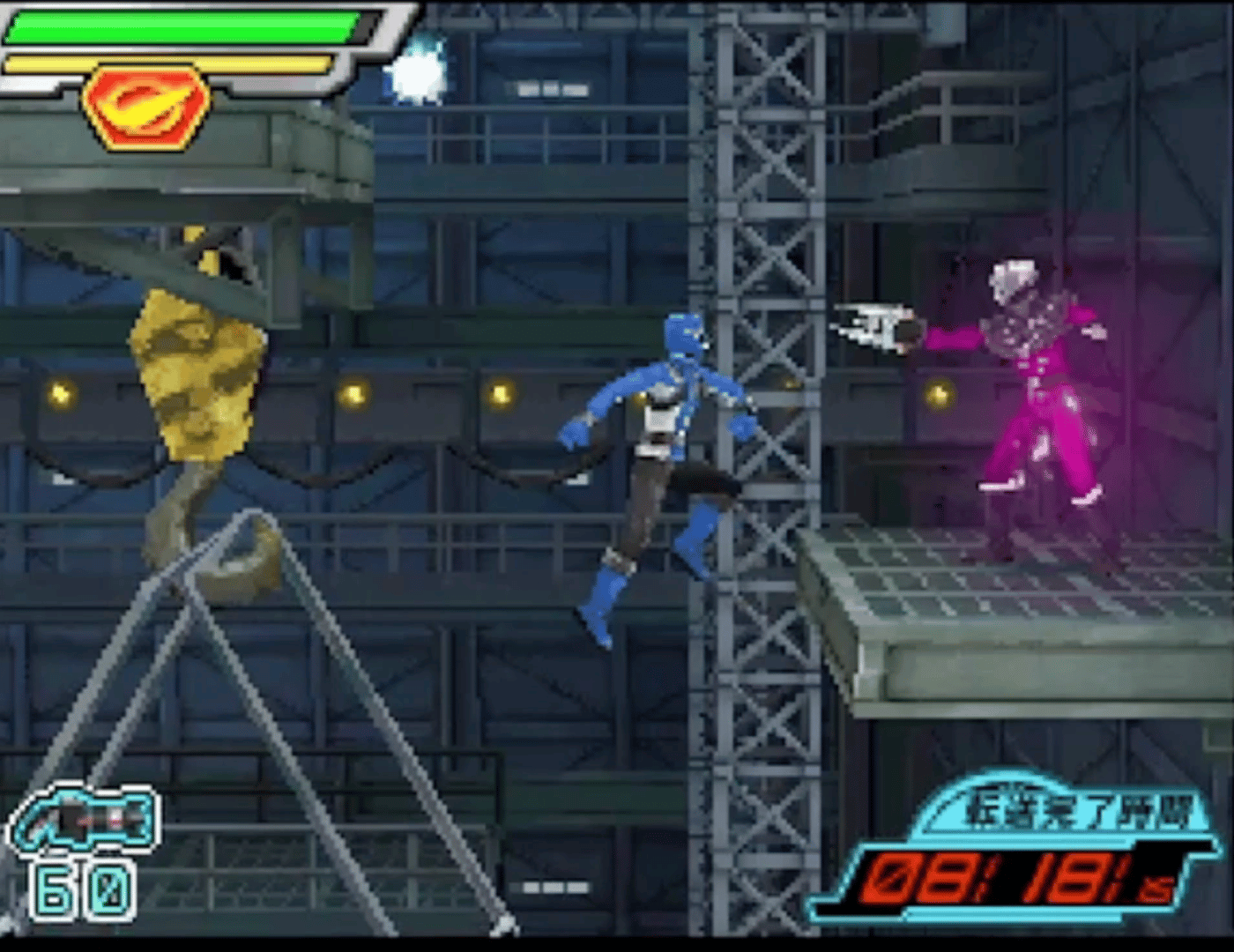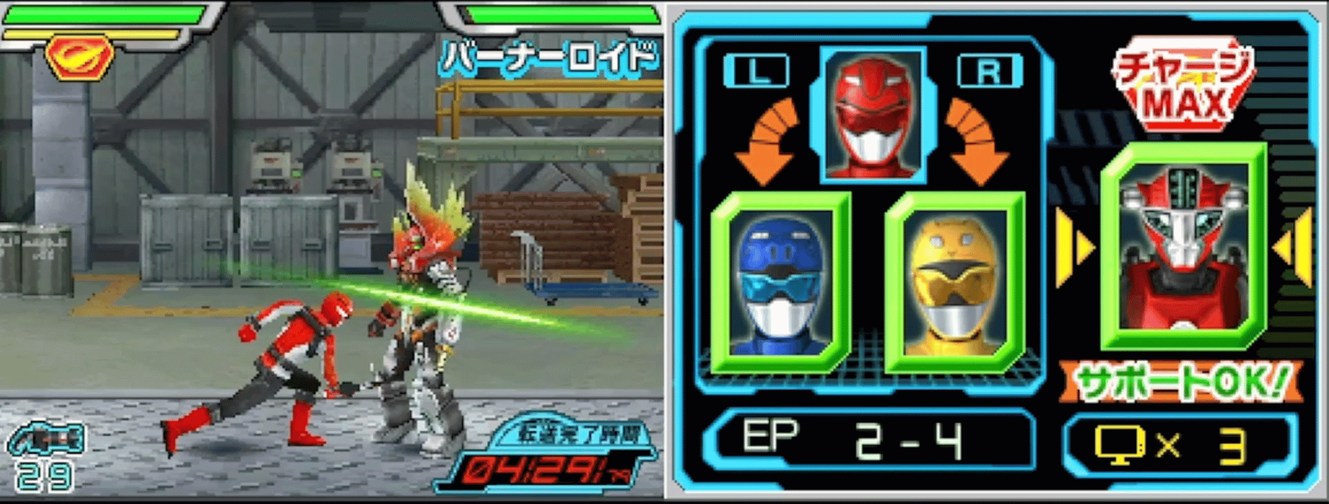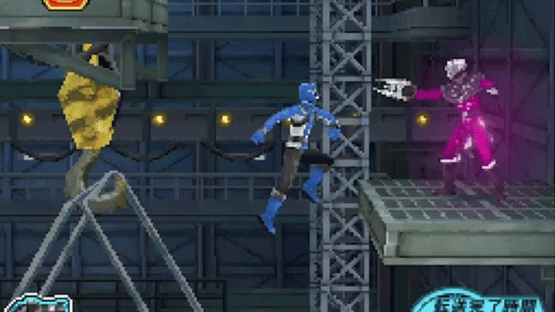 A 2D Platform Beat 'em up where players can change between the Go-Busters. Players collect ammo for their blasters which they can fire. the stages are linked and lead to boss battles where the Go-Busters use their Zords and Megazords in battles controlled by Quick Time Events.