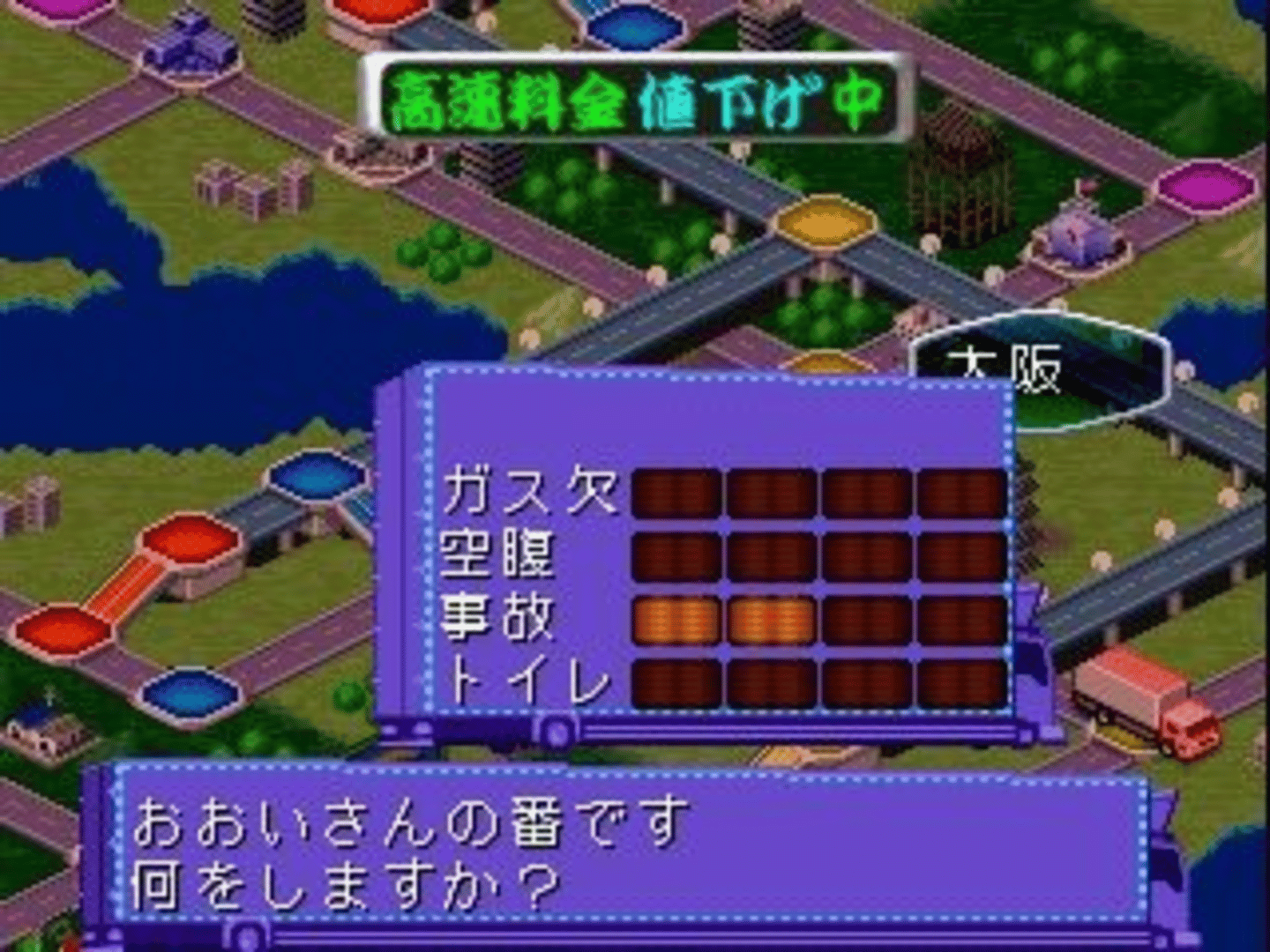 One to four players compete in a board game to become the top "art trucker" in Japan. Players make deliveries across the game board and earn Trucker Points they can use to customize their art truck (dekotora).