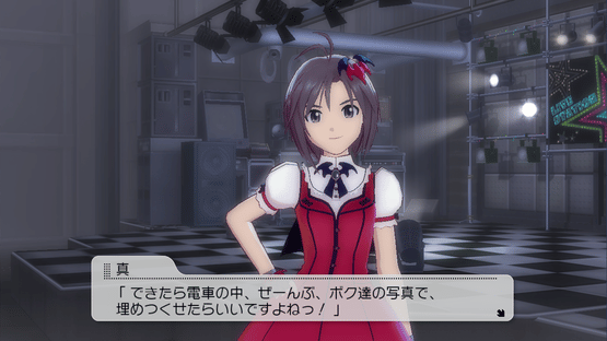 Gravure For You! is a sub-series of The Idolmaster series. Instead of producing the idols, the focus of the game is photoshoots. The player takes pictures of the idols posing in various outfits on different backgrounds. Each volume was released bundled with Blu-Ray releases of episodes of The Idolmaster anime series. Each game features songs from previous games, plus a new remix. Each available idol has their own song, with the featured idol getting the new remix. In Vol. 6, the idol focus is on Makoto Kikuchi, and the new remix is "MAKOTO BlackMIX." The locations are Studio Set and Classroom, the outfits are Devil Swimsuit and My Dear Vampire, and the accessories are Heart of Vampire and the optional Vampire Mouthpiece.