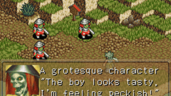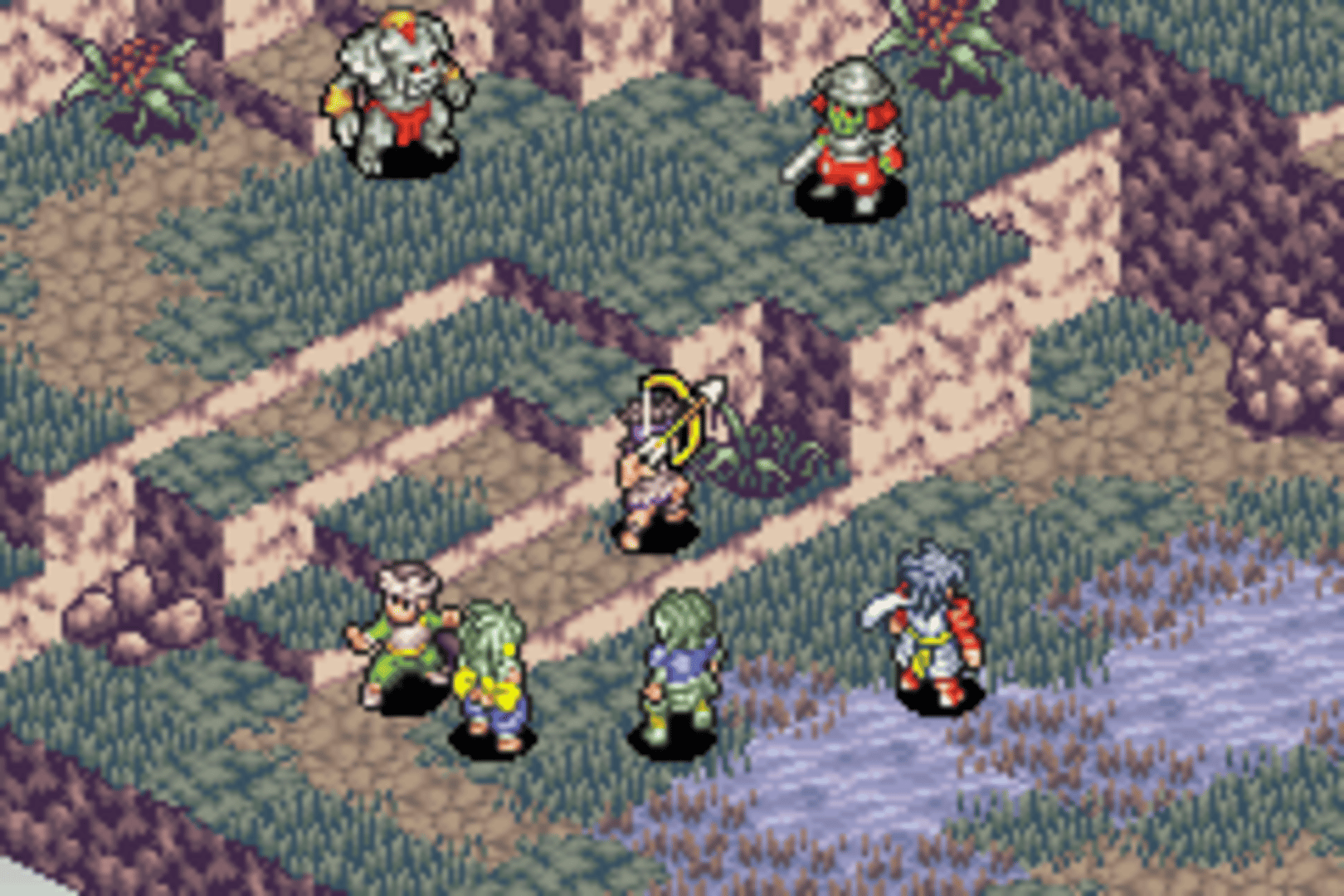Onimusha Tactics is a turn-based strategy game between the player's side and the enemy's side. In each level you can bring a squad of no more than 10 people. There are no items to buy or sell, however equipment is available and customizable. Upgrades of existing weapons and armor can be done using the defeated souls of enemies absorbed into the Oni Gauntlet. New weapons and armor can be found or created through fusion of Genma Stones. Recipes must be found for each separate item before it can be fused.