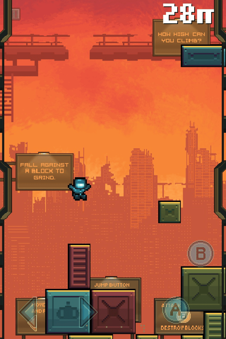 An endless rain of blocks fall from the sky. The player's only means for delaying death is to keep on top of things, figuratively and literally.