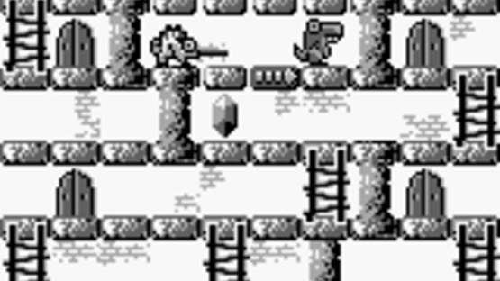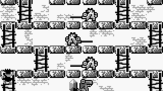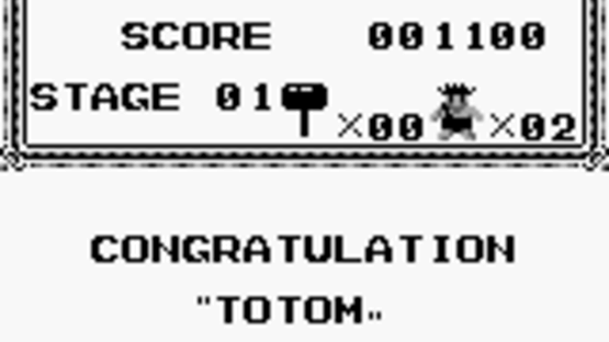 This is an action puzzle game where you control a caveman climbing a tower. The tower is filled wit monsters and traps. Sometimes, what appears to be a solid piece of flooring as actually a hole, so stepping on it will cause you to fall. Monsters can be defeating by pounding your hammer on the floor tile above them, causing it to fall and crush them. The same process can be used to enter rooms that cannot be accessed any other way. The hammer can also be used to make floor tiles appear in order to cross a gap. However, the hammer has a limited number of uses, so you must be careful to use it correctly. In order to access the next floor, you must collect a crystal, which causes a ladder to appear.