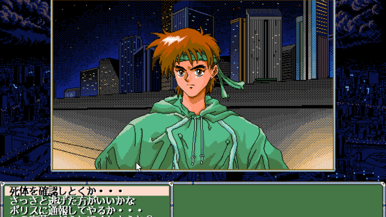 In the future, the cities of the Earth merge into a single megalopolis. Life has stabilized, and each new day is similar to the preceding one. Human beings have lost connection to the culture of the past. The huge city doesn't even have a name, and is simply called "City". Poor people live in the slums, and have no access to the quarters of the rich. Corruption reigns. The hero of the game belongs to an organization of assassins known as "Card". His last mission is to kill corrupted policemen who have been trafficking drugs. The hero must hide, but his relationships with other "Card" members are anything but clear... Four Flush is essentially a visual novel, though it offers more choices of locations and dialogue options that it is usual for games of this genre. There is no fixed command-based interaction. Most of the game progression, despite the presence of location and dialogue choices, is linear. There are a few scenes with nudity and descriptions of sex, though not particularly "hardcore".