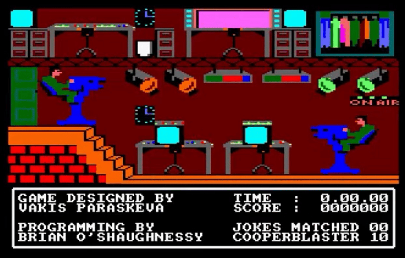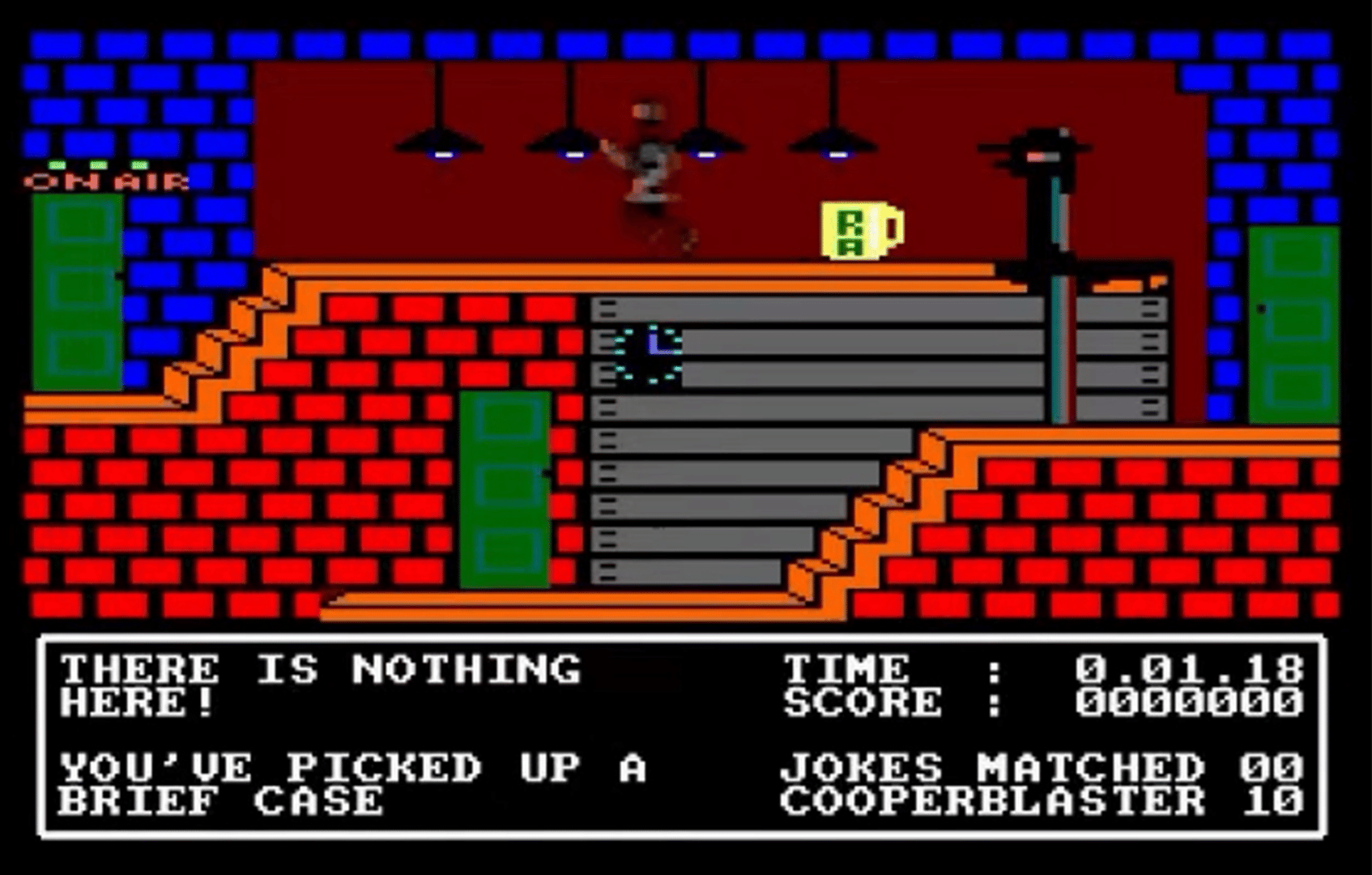 An adventure / puzzle game based on the fictional character created by UK comedian Russ Abbot. The character, a spoof of James Bond, has to collect pieces of jokes and set them together again