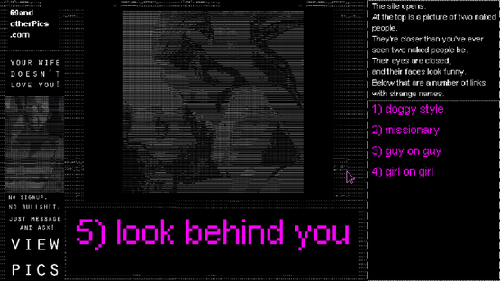 It's the 1990s. You're alone at home, and you heard about this thing called porn at school. You Must be 18 or Older to Enter blurs several genres together to create an anxious horror experience, one that hits a little too close. How deep will you dive before your parents come home? Do you even like this stuff?