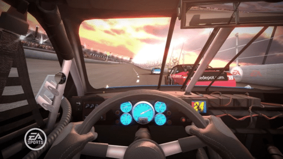 NASCAR 09 is the twelfth installment in the EA Sports NASCAR series, it is the sequel to 2007 game NASCAR 08. It is developed by EA Tiburon and released on the PlayStation 2, PlayStation 3, Xbox 360 and mobile phones in North America on June 10, 2008.[1] On March 12, 2008, EA announced Jeff Gordon as the cover athlete for NASCAR 09.[2] Through the career mode, "Chase for the NASCAR Sprint Cup", Gordon leads a mentoring program,[3] a new feature offered in NASCAR 09.[4] This is also the third EA Sports NASCAR video game to appear on a handheld system for Mobile phone version. In October 2007, Electronic Arts moved the PlayStation 2 game development to a new studio in North Carolina to be able to get better information with the NASCAR teams in an attempt to improve the game. The PlayStation 3 and Xbox 360 versions of the game were still made at the old studio.[5] Due to the development team using certain resources to work on key features in the game, no car manufacturers were present in this year's title.[6] To date, this is the last NASCAR game to be produced by EA, and the last NASCAR game for the PlayStation 2, after suffering from slumping sales, the difficulty of installing new features, and the lack of popularity. In 2009, NASCAR Kart Racing was released, replacing any 2009 installment for the annual series. It may be EA's last game before their exclusive license with NASCAR expires. Yet the door to NASCAR games for the PlayStation 2 has been shut, as Polyphony Digital's Gran Turismo 5 was not featured for the sixth-generation console. For game players in Canada, while the game was still released only in English, the instruction manual and box cover were bilingual, with text in both English and French.