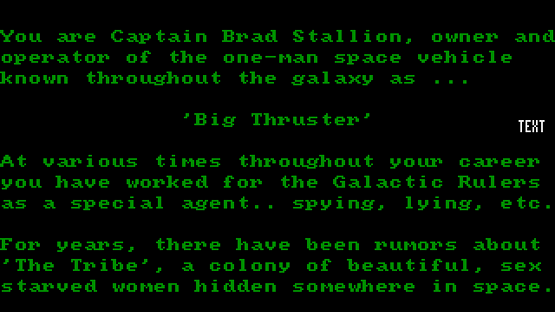Sex Vixens from Space is an adult adventure game controlled through text commands.