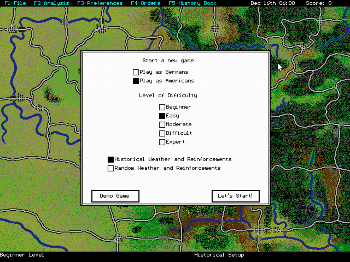 Although Patton Strikes Back is unarguably the worst game of veteran wargame designer Chris Crawford's career, it was a novel (and noble) attempt to attract non-wargamers to the fray through simplified combat, colorful animations, and excellent help functions and database. A commendable effort that would not be taken up again until SSI's phenomenal Panzer General