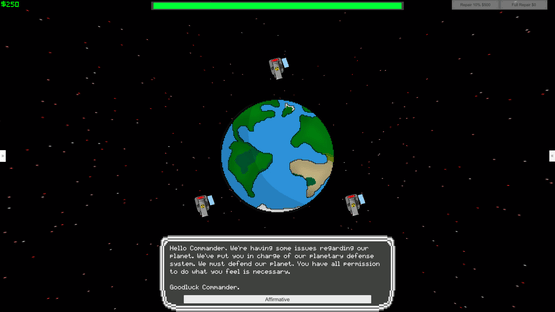 You are in the control of the Planetary Defense System of Earth. Your job is to protect Earth using turrets orbitting the planet. You have gotten full control of the planet and you are responsible to keep the planet intact.