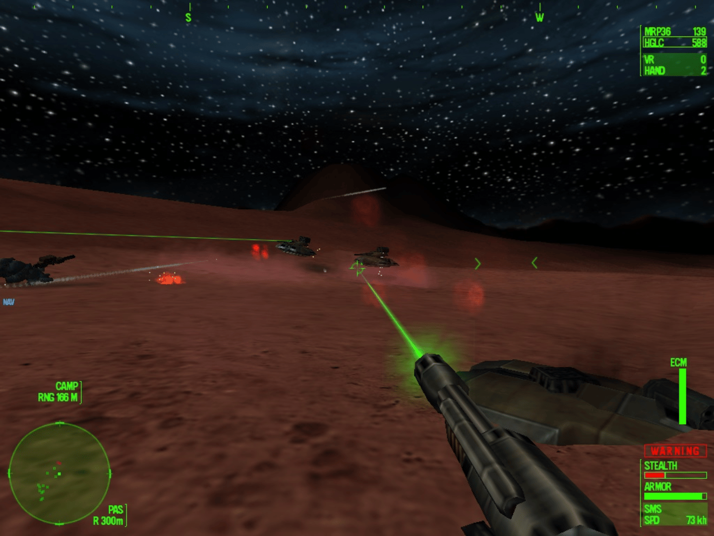 As the leader of the special ops group Dark Talons, lead your squad mates on a series of dangerous missions as you discover the NEC plot against your homeland, Terra Nova. Operate behind enemy lines as you gather data, attack enemy camps, capture enemy leaders, take over space stations, and more. Combat happens on land, underground (huge caverns), and even in space. There are plenty of weapons to outfit your gear, even some hand-to-hand weapons. You can also add perks and flaws to further customize your gear. Stealth is a major concern in some missions. The game play feel is very different from the Mechwarrior series. Set in Dream Pod 9's Heavy Gear universe (it actually rivals the Battletech universe in complexity, though not nearly as famous), this game requires 3D accelerator with its "Dark" 3D engine. The gears are capable of very human-like movements, such as kneeling, crawling, and jumping.