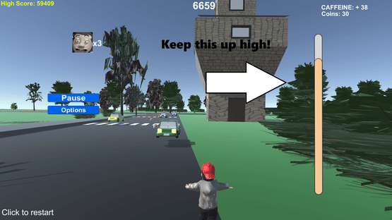 Coffee Run is a 3D endless runner game in which you run through the city and collect coffee, coffee, and more coffee. The more you drink, the faster you run. Don't let your caffeine meter drop too low or you'll slow to a grinding halt! Also, watch out for the oncoming traffic!