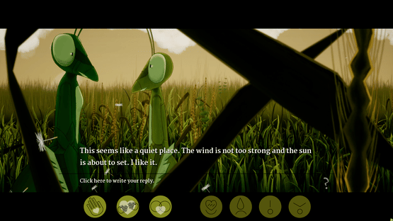 Assume the role of a praying mantis in a relationship. Constantly torn between their mutual love and the instinct to have sex – which could lead to the male mantis’s death – the couple are now on the verge of making a decision. Assume the role of either of the lovers, and try to keep their relationship in balance. Do your best to convey your feelings in a situation with no solution.