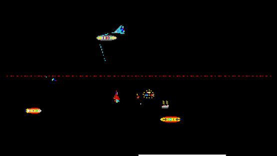 Alien Strike makes use of digitized images, music, and speech, which is noteworthy for a 1987 release. The in-game screen is separated by a line into two sides. Each player controls a jet. You have to shoot the carriers and ships on your enemy's side of the screen while preventing the other player from destroying yours. The game speed is insanely high. You probably won't stand any chance against the computer, but with two players, this could be fun for a short while.
