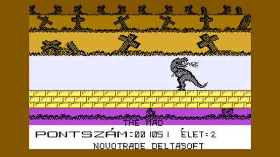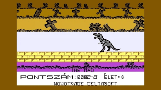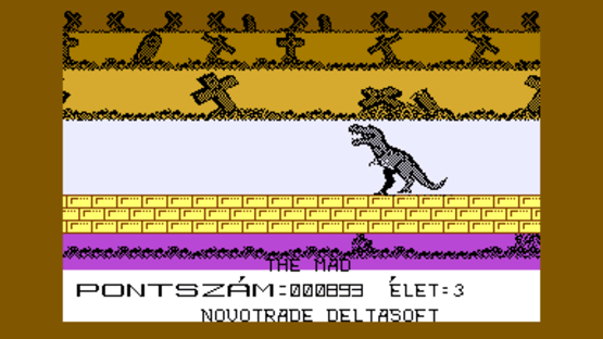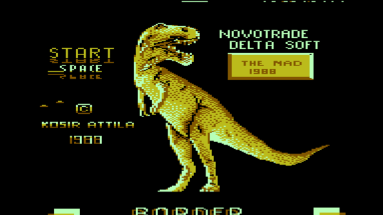 Godzilla is a 1988 action video game for the Commodore 16 and Commodore Plus/4 developed by Attila Cosir and distributed by Novotrade and then re-released by DELTASoft. It is a simple, endless game of avoiding taking hits from obstacles and enemies in a scrolling field. The first level introduces ground spikes, which can be jumped over. The second level introduces a UFO-like object that flies toward Godzilla's head, which can be eaten. The third level introduces a giant bee that heads toward the back of Godzilla's head, and is defeated by using fire breath. Finally, the fourth level introduces a space shuttle-like object that cruises on the ground, which can be jumped over. Godzilla has 6 lives, and once they're gone the player has to start over. The game awards points for keeping Godzilla alive, however it doesn't keep track of high scores. The game itself is completely silent, save for a brief voice sample when the game is started, and a loud, static-filled roar that Godzilla utters whenever he gets hit by an object.