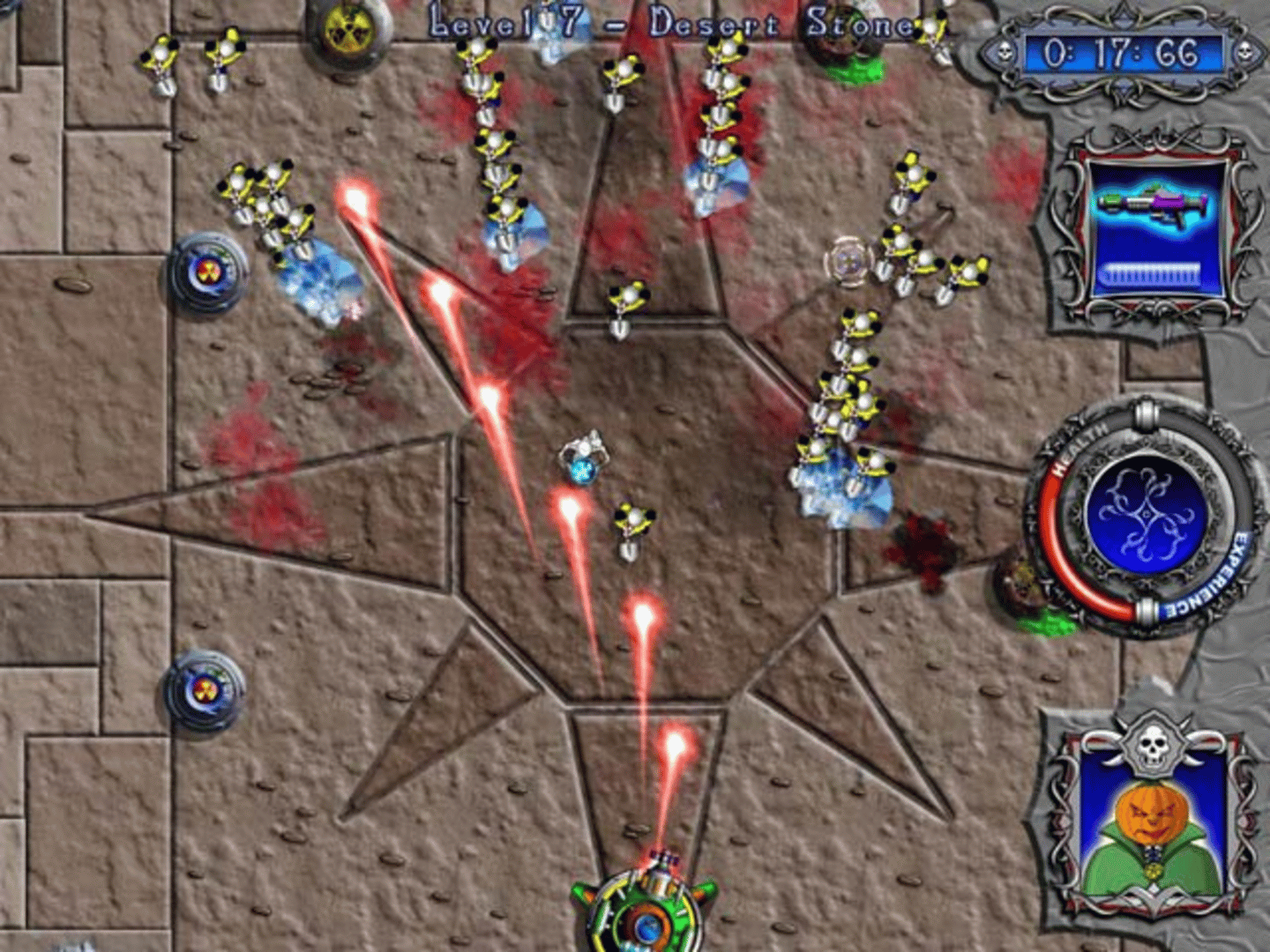 Not afraid of Death? What if he is accompanied by Halloween and Rock-N-Roll? Play the part of these antiheroes and go to war in this all-out action experience! Each character has their own strengths and skills, but this is not a game for the faint of heart. With over 40 levels to RIP through, the results are murderous! 40 levels of murder and mayhem A variety of guns and battle magic Three chilling characters A toned-down, less violent kid's mode