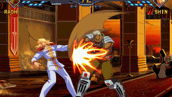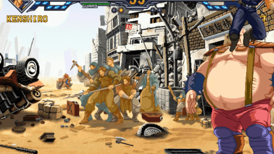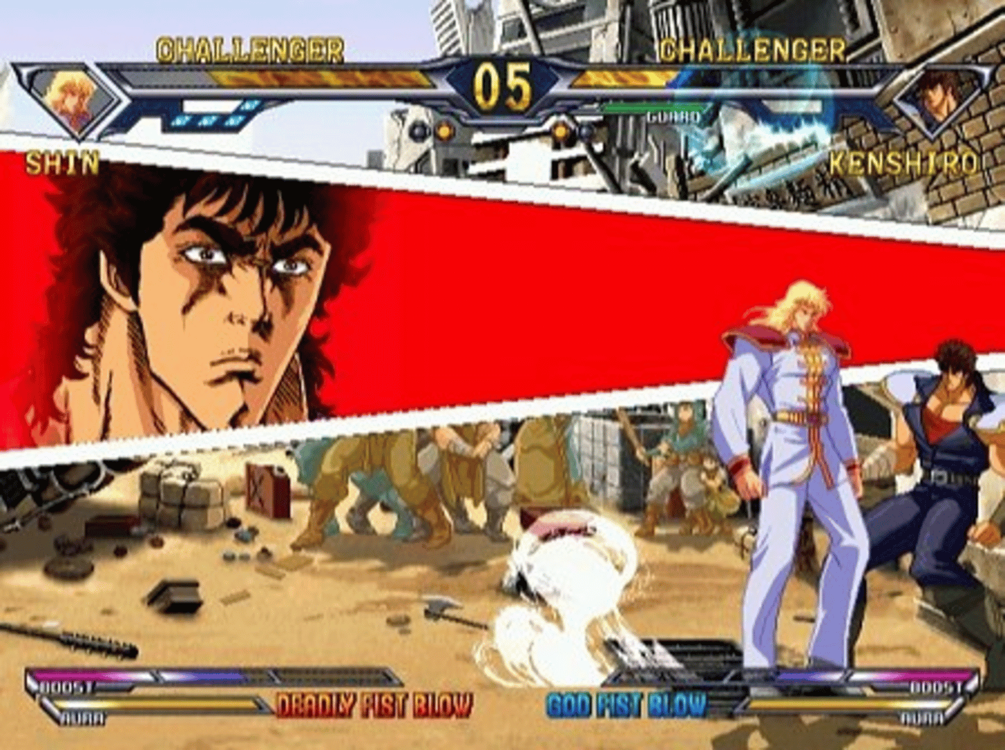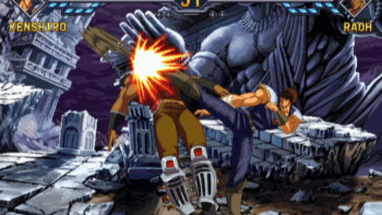 Hokuto no Ken: Shinpan no Sousousei Kengo Retsuden is a 2D competitive fighting video game published by Arc System Works released on March 27, 2007 for the Sony PlayStation 2. Based on the manga series of the same name, it was originally released in 2005 as a coin-operated arcade game for the Atomiswave hardware. A PlayStation 2 port, retitled Hokuto no Ken: Shinpan no Sōsōsei Kengō Retsuden, roughly translated as Fist of the North Star: The Twin Blue Stars of Judgment - History of the Fist Masters, was released exclusively in Japan in March 2007. This version features a bonus DVD including an exclusive training mode ("Starter's Guide") and a documentary covering history of previous Hokuto no Ken titles for home consoles. The arcade version was officially distributed by Sega in North America, while the PS2 port was released only in Japan. In 2020, a homebrew conversion was released for the Dreamcast.