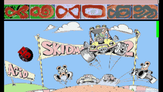 This package adds a number of new features to the chaotic and thrilling racing game Super Skidmarks. The major additions are 2 new track disks, featuring a total of 12 new tracks (taking the game up to 36), featuring the succession of loops, jumps and crossovers of the original. In addition, the track disks are now fully hard-disk installable (the program and car disks always were). The program disk has been replaced with an updated one, featuring two new difficulty levels and new championships to take advantage of the new tracks.