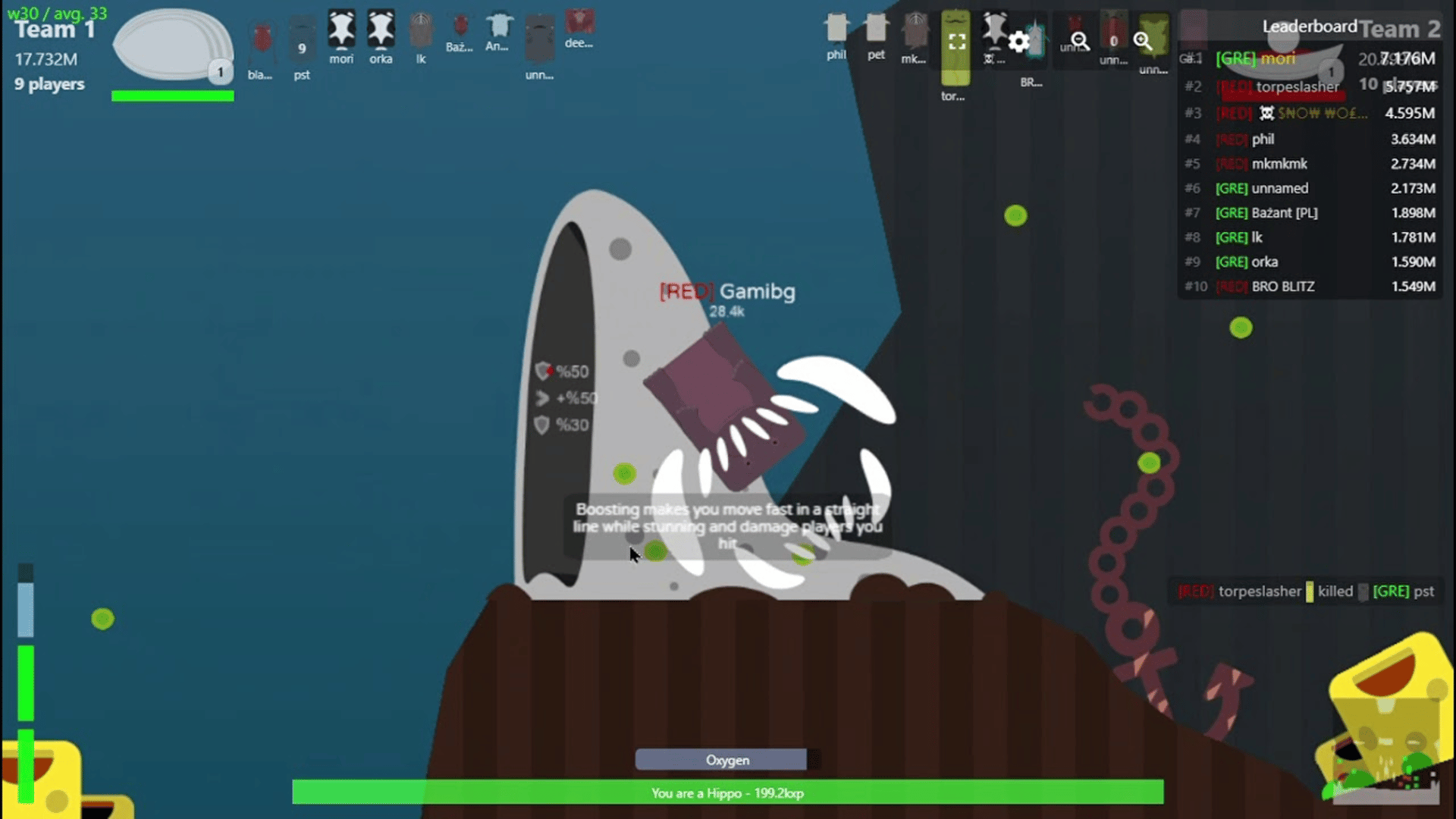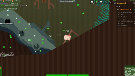 Deeeep.io is a game about evolving from small animals that live in the sea and you eat meat by killing or snatching other people, or bottom-feeding algae and such to evolve to greater animals and score.