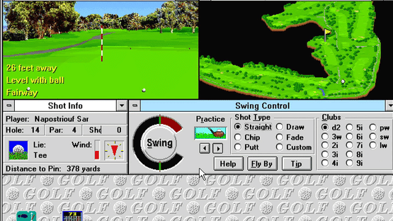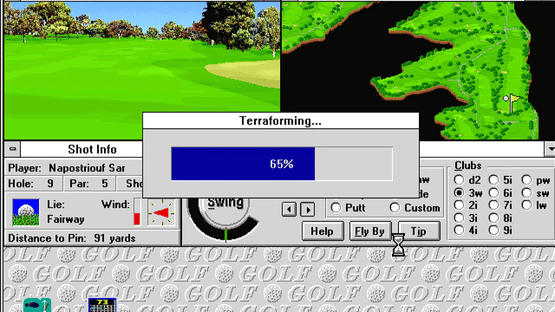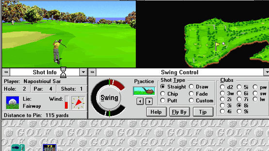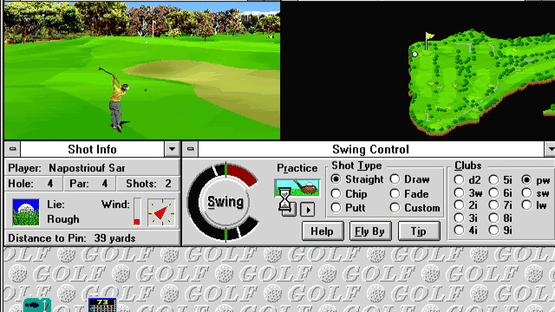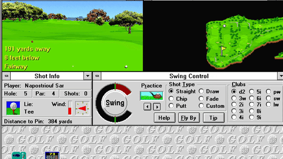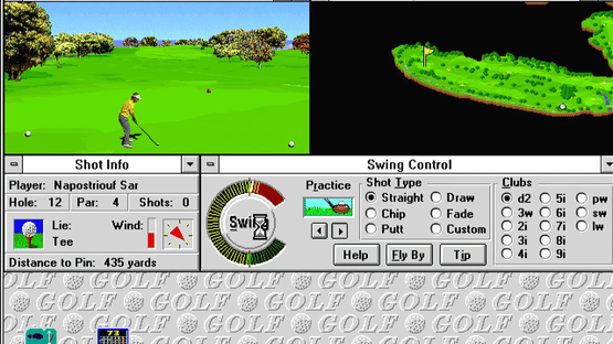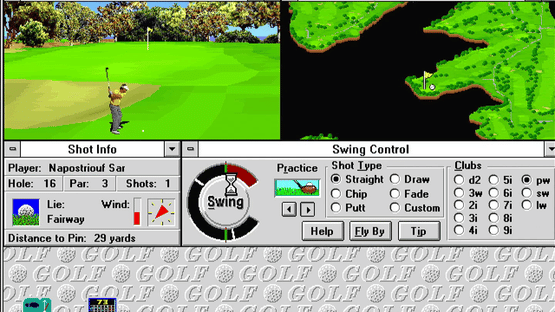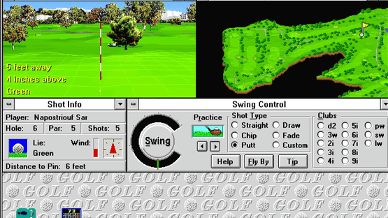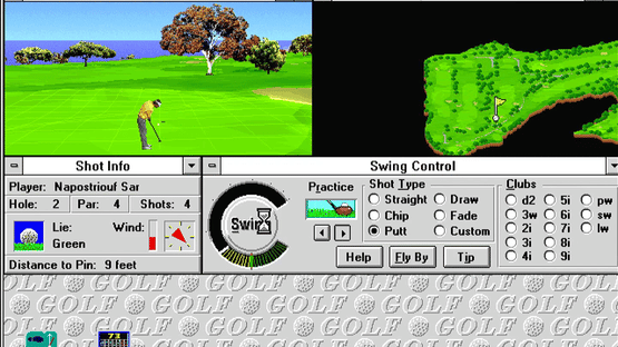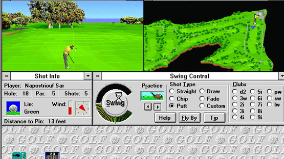 Microsoft Golf is a golf simulation game based on the Links. You have 18 courses you can play. You also have the ability to change to numerous different clubs and type of shots depending on the wind and terrain.