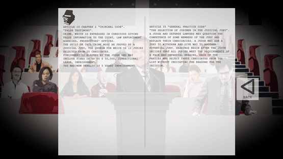 In our game you can immerse in the world of the most progressive and controversial justice system in the world, cover a career path from an alumnus of prestigious law school to the head of the county court.