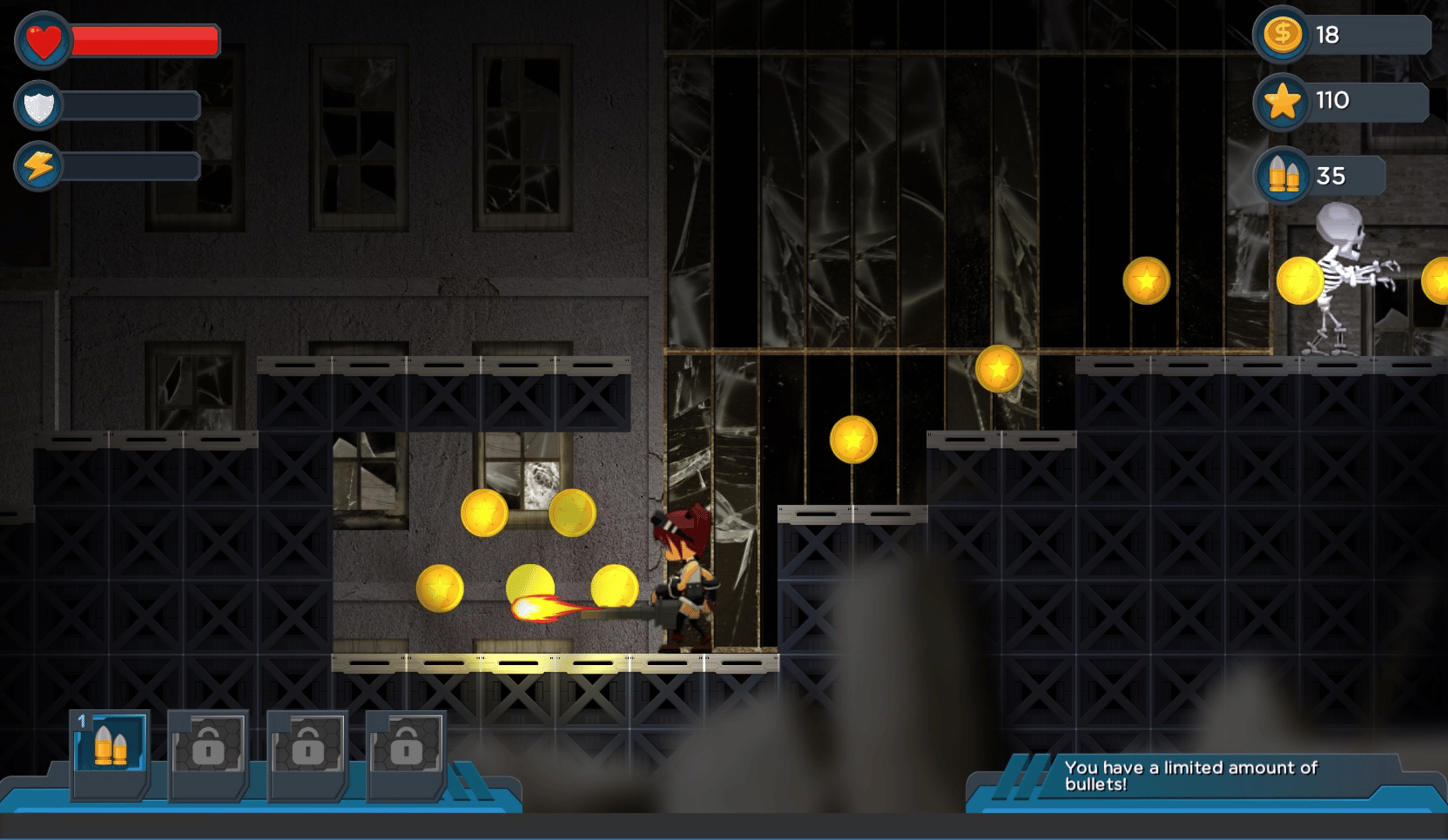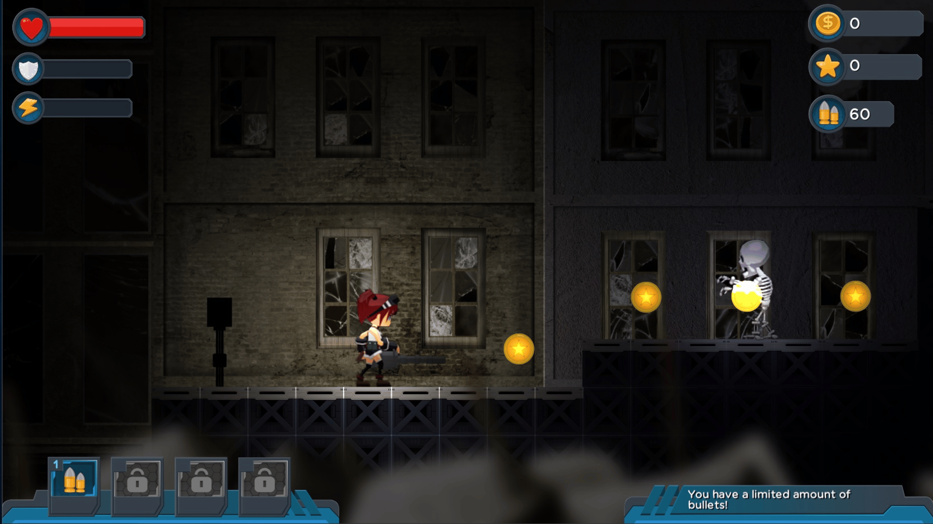 Lexie The Takeover is a 2D platformer that will send you to a post apocalyptic world where an army of skeletons roam, lead by the infamous Commander Bones. Your goal? To defeat the army and Commander Bones himself to restore peace to humanity.