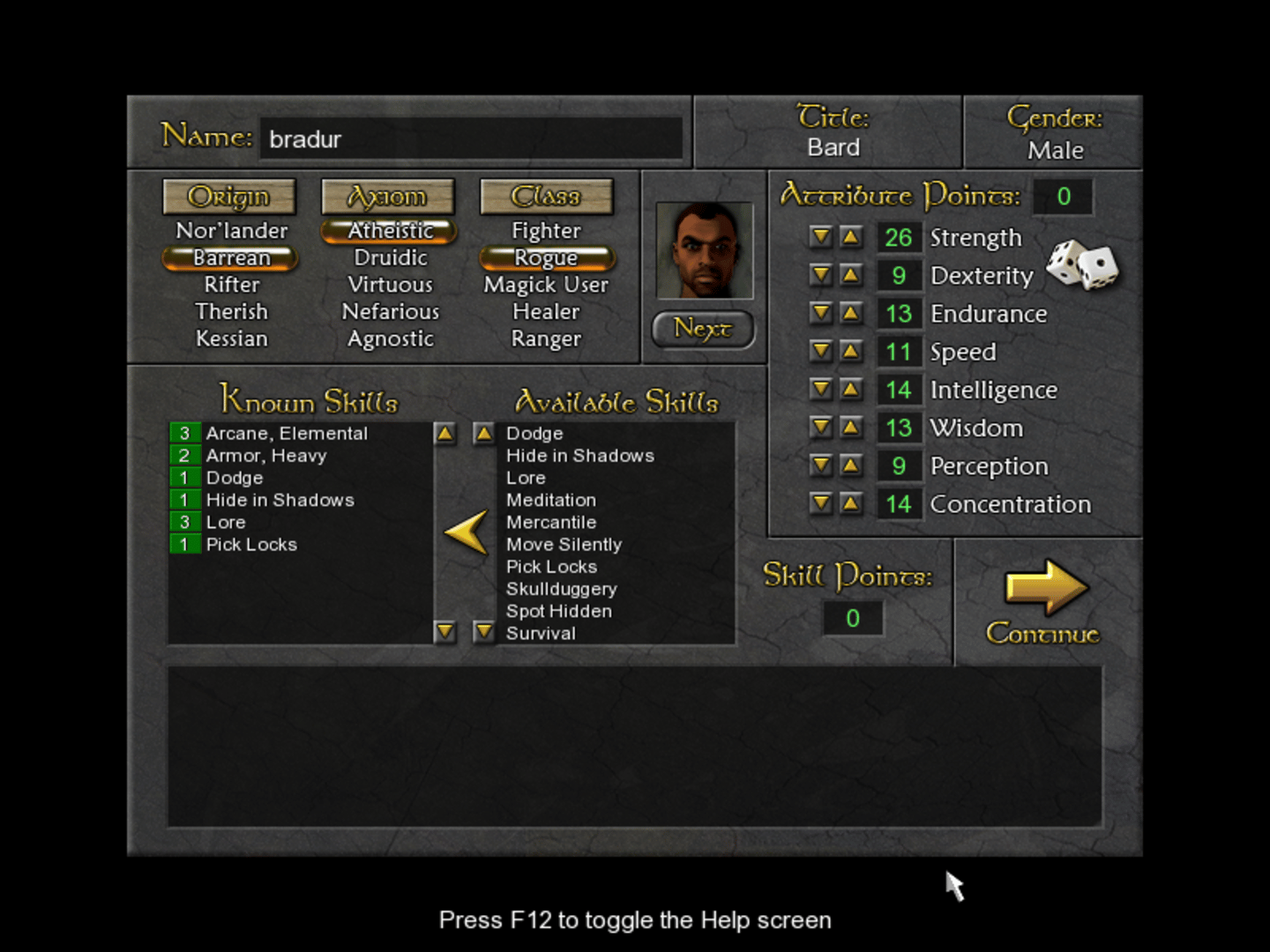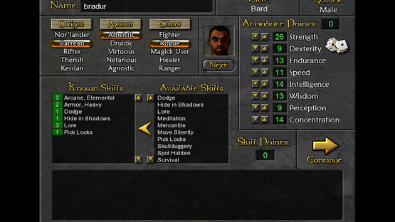 Classic turn-based role-playing game, played with one customizable character. The player travels between towns, does quests and explores dungeons.