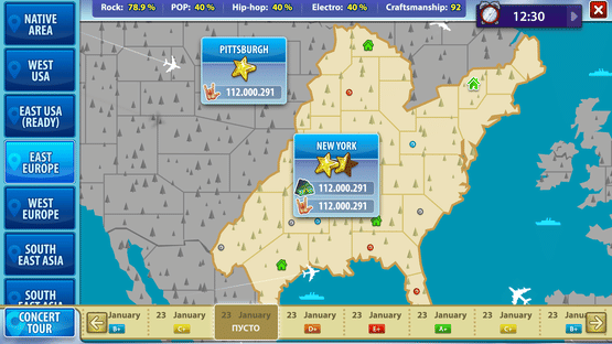 Always dreamed of creating your own musical group and making your way to the stars? Now your desires can become a reality! In our game you can go all the way from rehearsals in the garages to appearances on the stages where world-famous performers have visited. You will have the opportunity to record songs on different topics, give the name of each of them, release albums. Manage the activities of your newly-born musicians completely and completely! You have four most popular genres in the music world: rock, electronic music, pop, r'n'b. Your musicians can play in all directions, so do not have to make a hard choice at the beginning of the game - improve in all these genres! There are three levels of difficulty to choose from, but if the game seems to be hard for you, you can change your difficulty level at any time. With the promotion of the group you will be assisted by several managers, each of them has a huge number of ideas on how to do it. You will have to face a lot of difficult moral choices, which is more important for you: money, popularity through black PR, or the love of people? Or do you just want to carry your creativity into the masses and make people happy? Managers will give you a huge amount of bonuses if you make the right choice and listen to your heart and head. You will have to act smartly and judiciously, because some elections can damage your reputation on the contrary. You will be available hundreds of different musical instruments, as well as many cool things that you can give to your musicians, and each of these items will give a certain bonus! Win many musical awards on the way to the top! Compete for a place in the top 100 with other players! Your musicians will often comment on what is happening to them, so you definitely will not be bored! Rather, start to conquer the whole world with the help of your music!