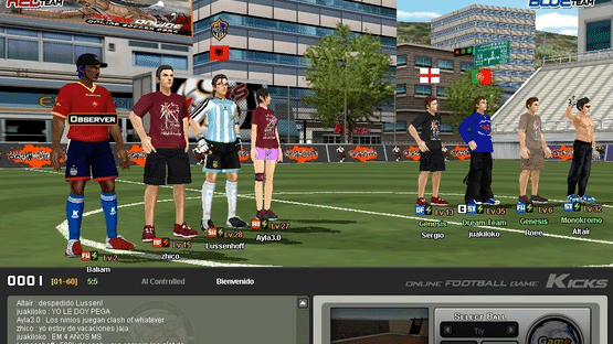 Kicks Online is a free-to-play soccer MMO. It featured street soccer modes and rules, 3v3, 4v4, and 5v5 matches, and unconventional fields like roofs, streets and factories.
