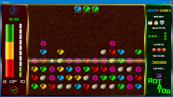 Rotator is a casual 2D puzzle game based on groupped diamonds. Each falling diamonds group can be move, rotate, scroll and fast drop. Experience endless gameplay with unique puzzles every day in a beautiful game filled with different surprises, explosions under magic music and sound effects.