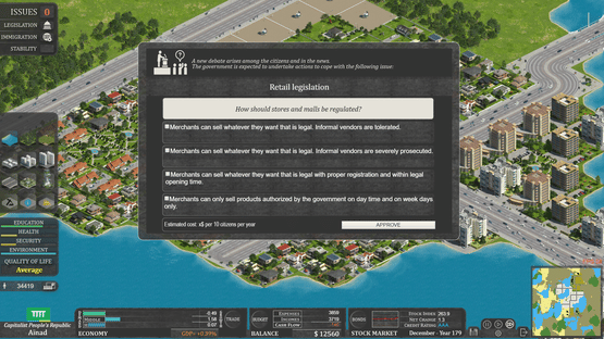A city building game that let you create a micro-nation from scratch and experiment with your own political ideals.