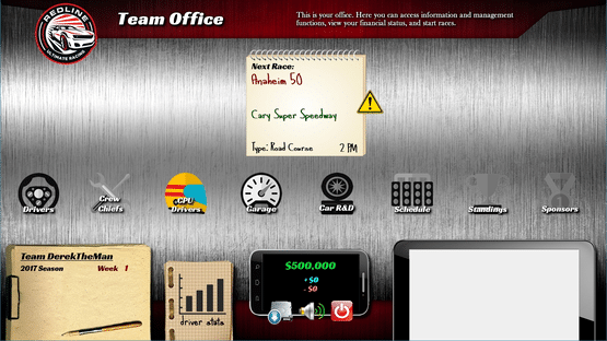 Ever dreamed of owning and managing your own car racing team? Redline Ultimate Racing allows you to make your dreams come true! Take control of either a randomly generated racing universe or load your own custom-created universe into the game.