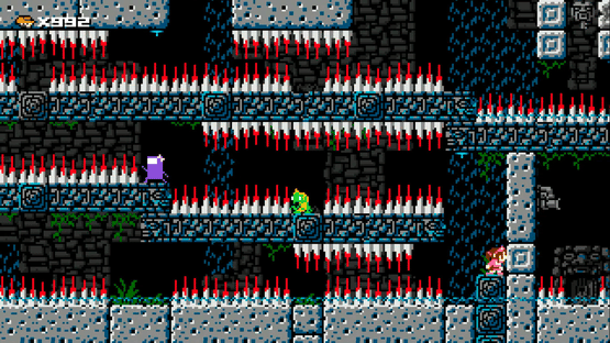 The son of a famous adventurer, Aban Hawkins must avoid an endless gauntlet of devious traps and dastardly hazards while exploring the Ukampa Ruins in South America. Sharp spikes, poison darts, falling blocks and flamethrowers are among the deadly obstacles that Aban will have to overcome in order to reach the Door of Poko-Mum and learn the truth about his missing father. A throwback to the most challenging 8-bit platformers, 1001 Spikes requires intense concentration, constant memorization and flawless timing. You start the game with 1,001 lives, and you may end up losing every last one of them before you make it to the Golden Shrine!