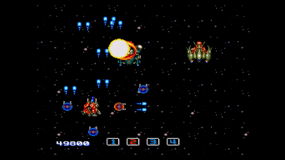 An enemy armada approaches Earth bent on the destruction of the human race. In this sequel to Image Fight, players take control of the most advanced spaceship in the fleet. Destroy "POW" cases for items and special weapons. Obtain Red and Blue Pods to equip your ship. Red Pods fire the opposite way your fighter is moving, and Blue Pods only fire forward. You can also change the speed of your ship, to adjust to different battle conditions. Defeat the alien invaders once and for all and bring peace back to the Galaxy.
