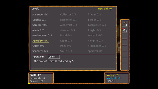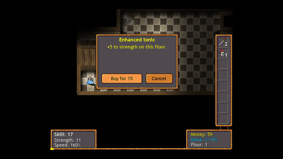 Turn-based, but fast-paced, roguelike-game when you do not need to think over each turn and count the HP. If you see the weak - kill him! And if you see a strong man - run away, or think how to defeat him and earn experience and money. Dispose of the received money and experience wisely and then you will surely receive the favor of Mistress of Maids.