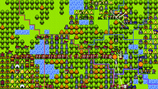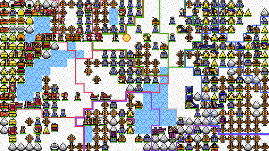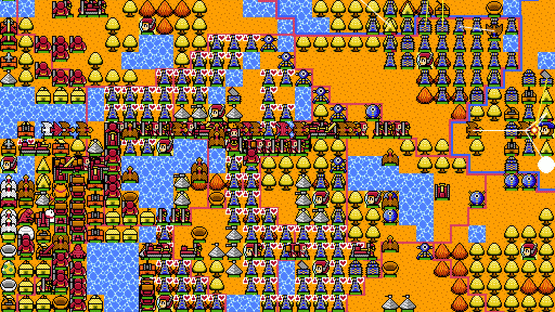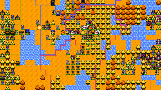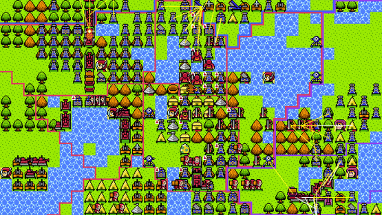 8bit style RTS! You can win at high speed by a speed button. You can win a stage in 5-10 minutes. Easy operation. Your color is "Red". You build "Factory". -> Creates Units! You build "Fortress". -> Atacks Units! When you occupy all towns, you win. You get Buildings and Special Powers.