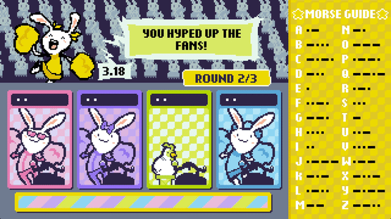 Telegraph cheerleading for 1-4 players! Team up or face off, hyping up the crowd by shouting letters via Morse Code.