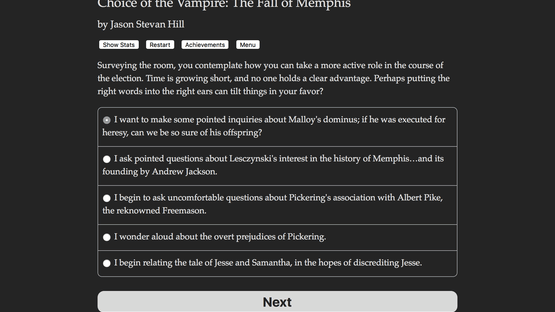 Feast on the blood of a dying city: Memphis, 1873! Make your national debut in the Society, a conspiracy of vampires who convene in Memphis to elect a new "senator." The city burns with yellow fever, as the nascent Ku Klux Klan rises.