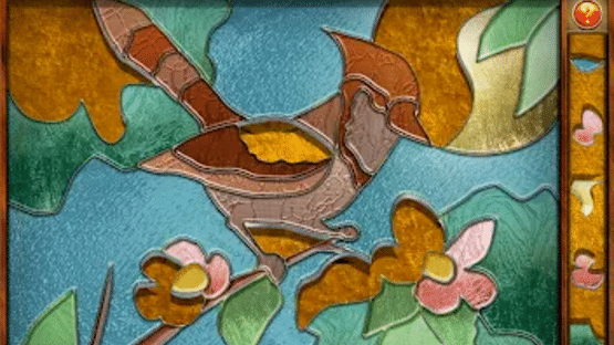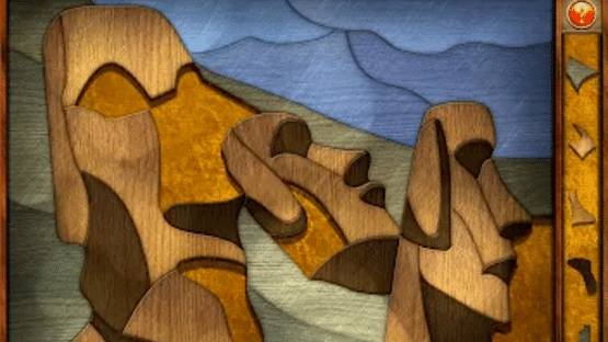 Puzzle game with designs made from wood, fabric, stone, metal, paper, and glass.